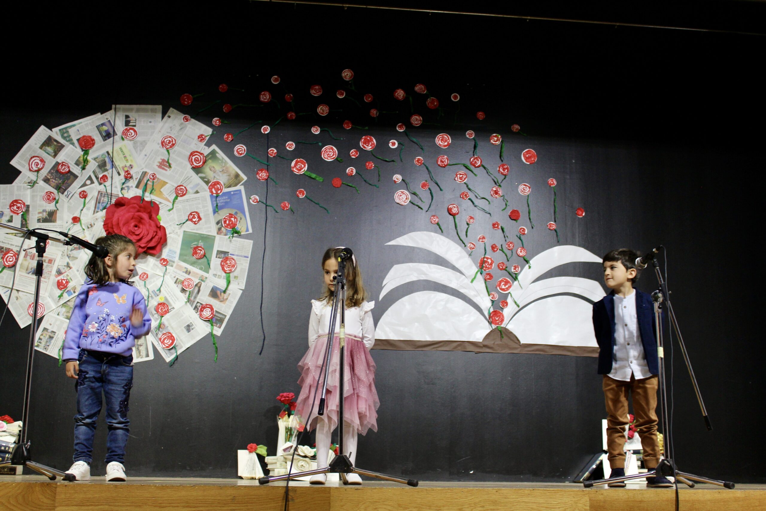 A 1/4 de 4 els més menuts obrien l’acte recitant els diferents poemes per parelles. Com a cloenda van interpretar una cançó en català i una altra en anglès.