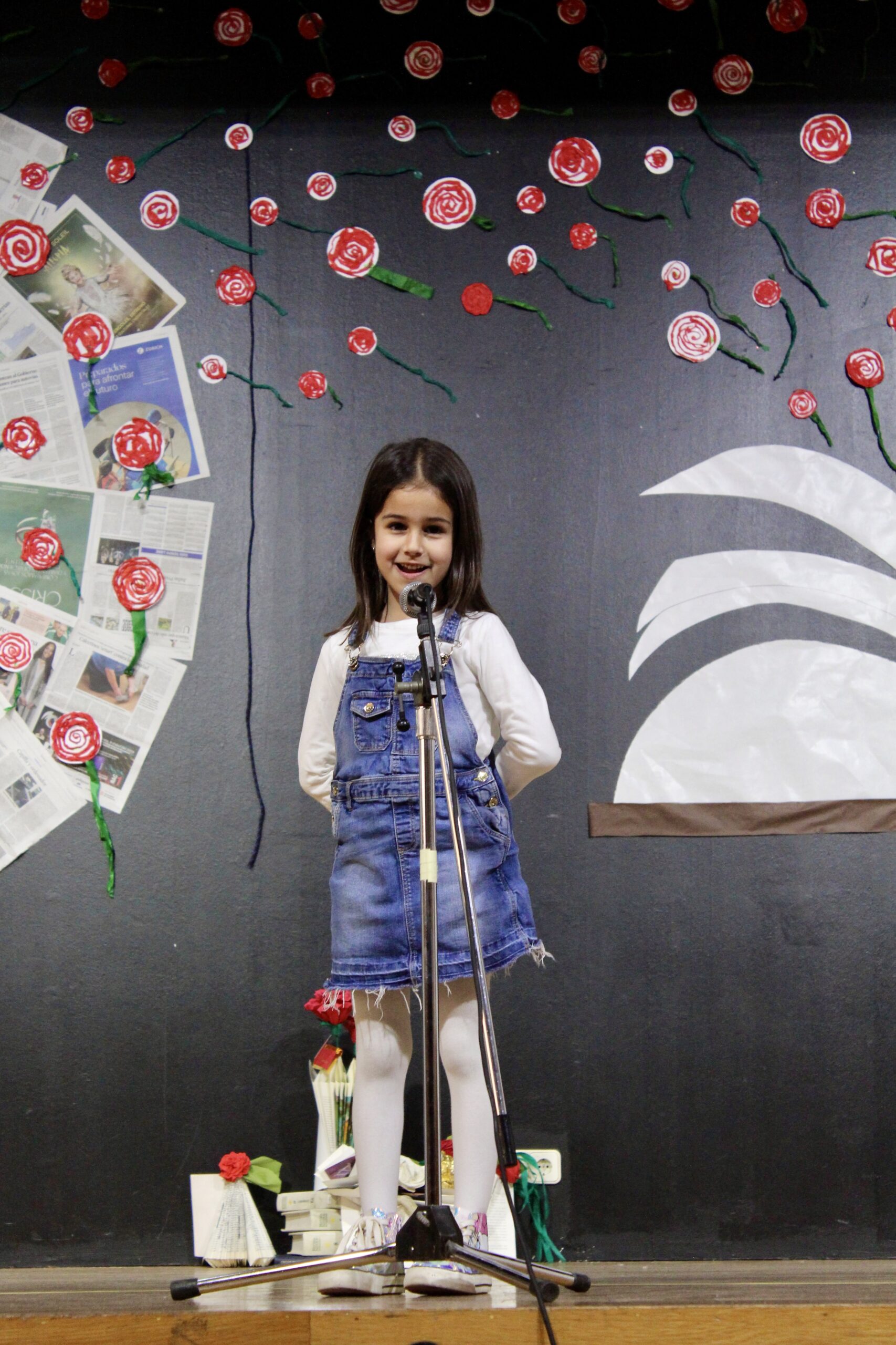L’acte va continuar amb l’actuació dels nens i nenes d’I4, els quals van recitar poemes en petits grups i van finalitzar la seva actuació amb una cançó en anglès i una altra en català.