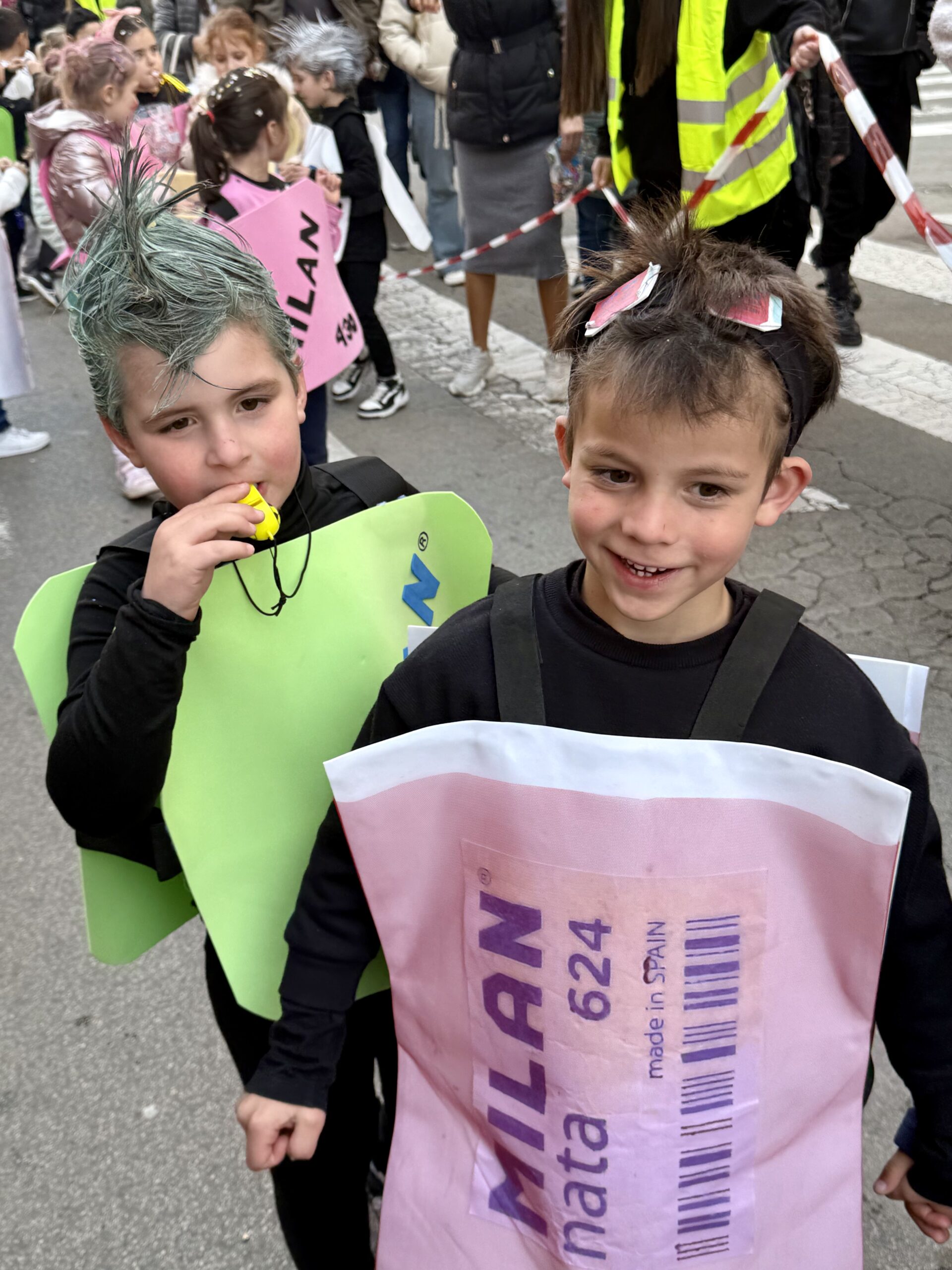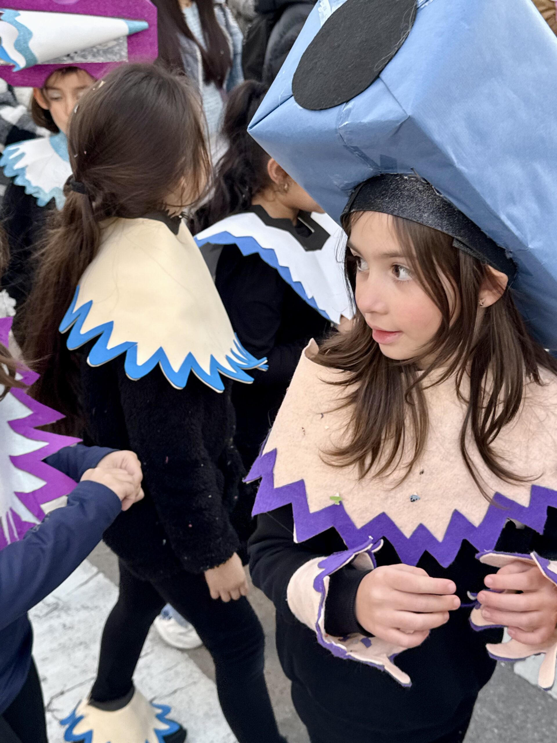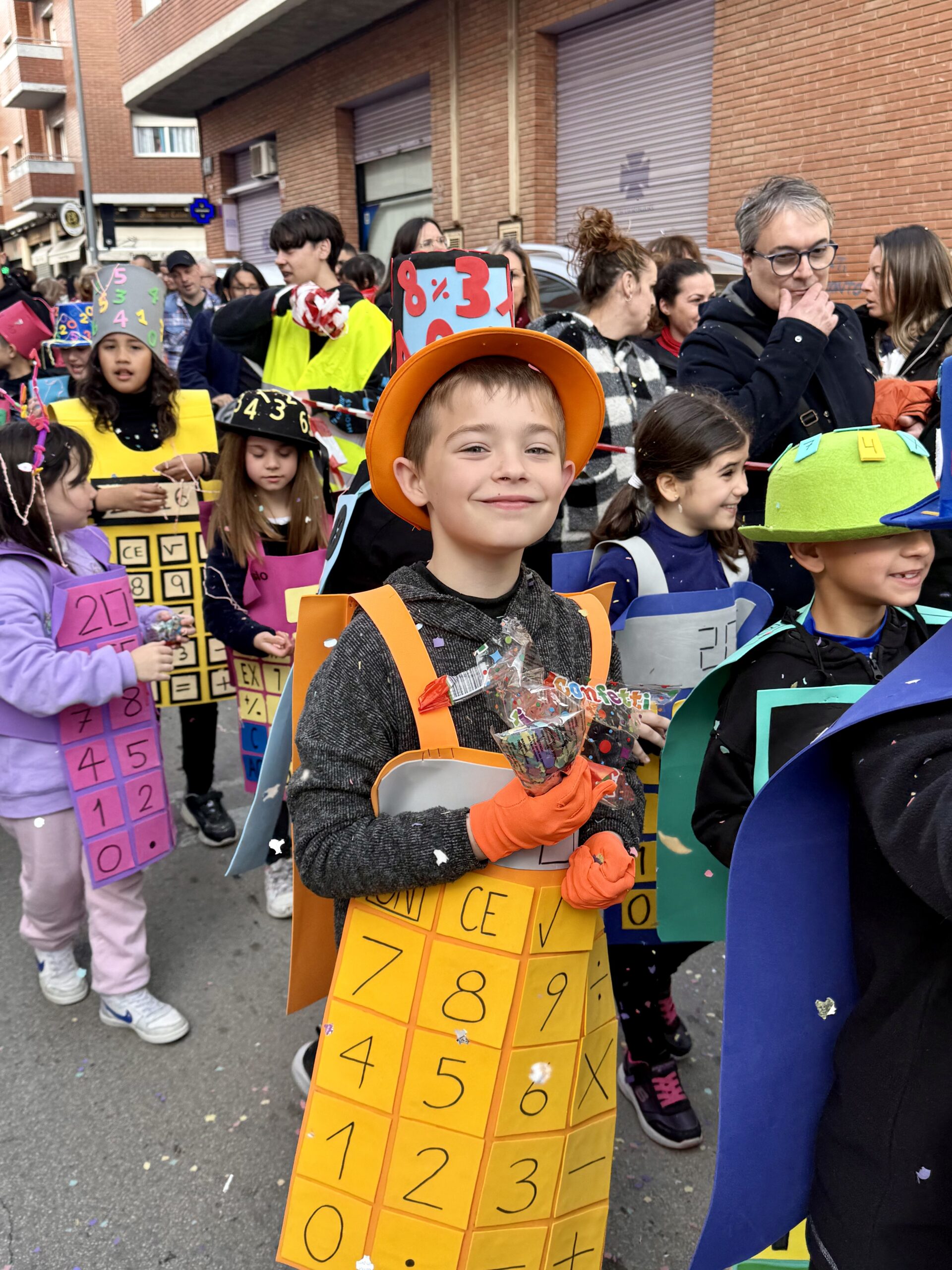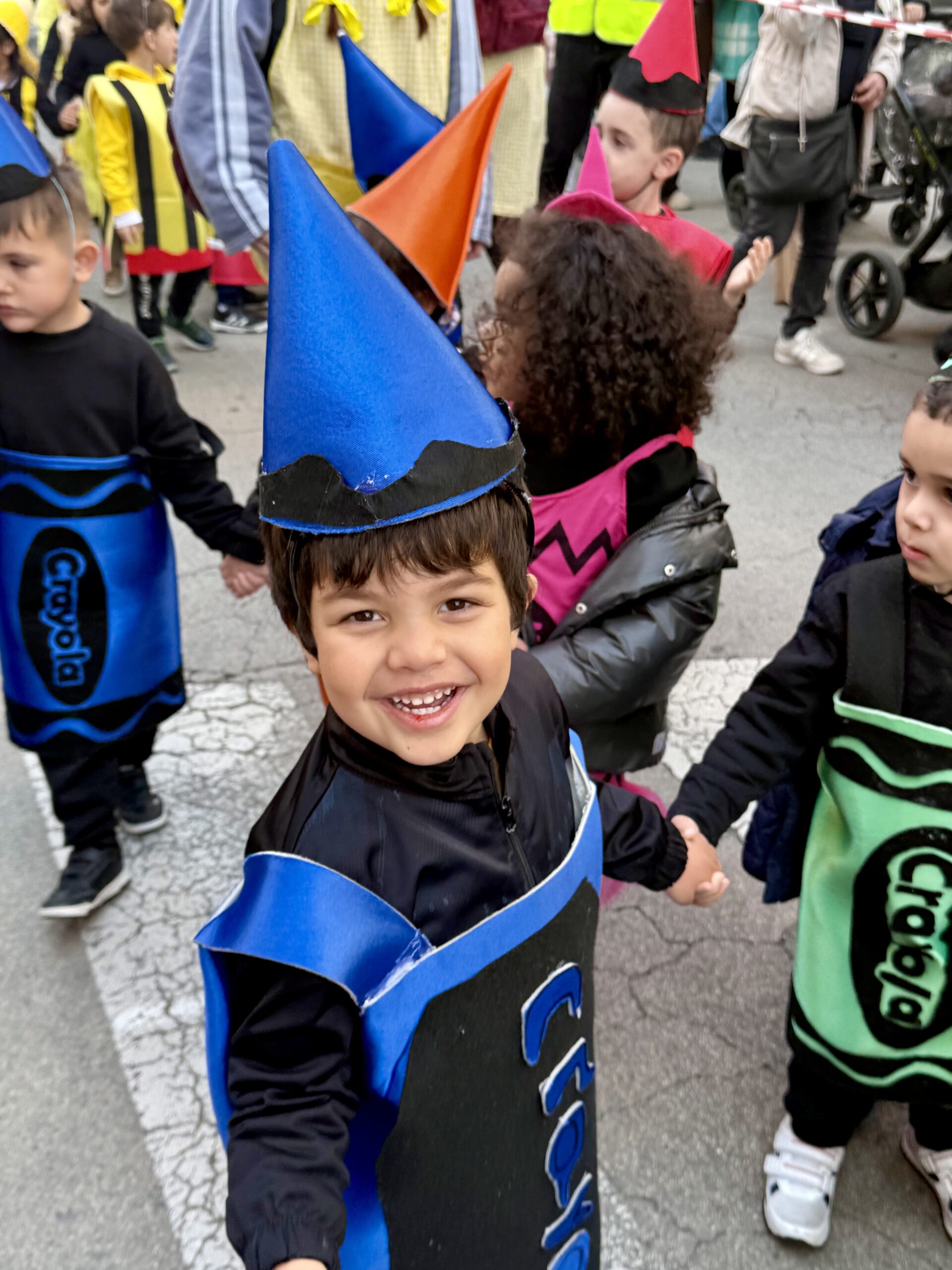 A la tarda, cada classe, ben guarnits amb la seva vestimenta sobre el material escolar, va sortir de forma ordenada davant de l’escola, tots amb la idea de lluir la seva disfressa amb molt d’orgull: Educació Infantil lluïen els colors, els llapis i les gomes d’esborrar; Cicle Inicial anaven de gomets i maquinetes; Cicle Mitjà, lluïen les calculadores i les pintures i pinzells; Cicle Superior, es van disfressar d’agendes i regles; i l’ESO lluïen de subratlladors, típex, xuletes i teclats d’ordinador.