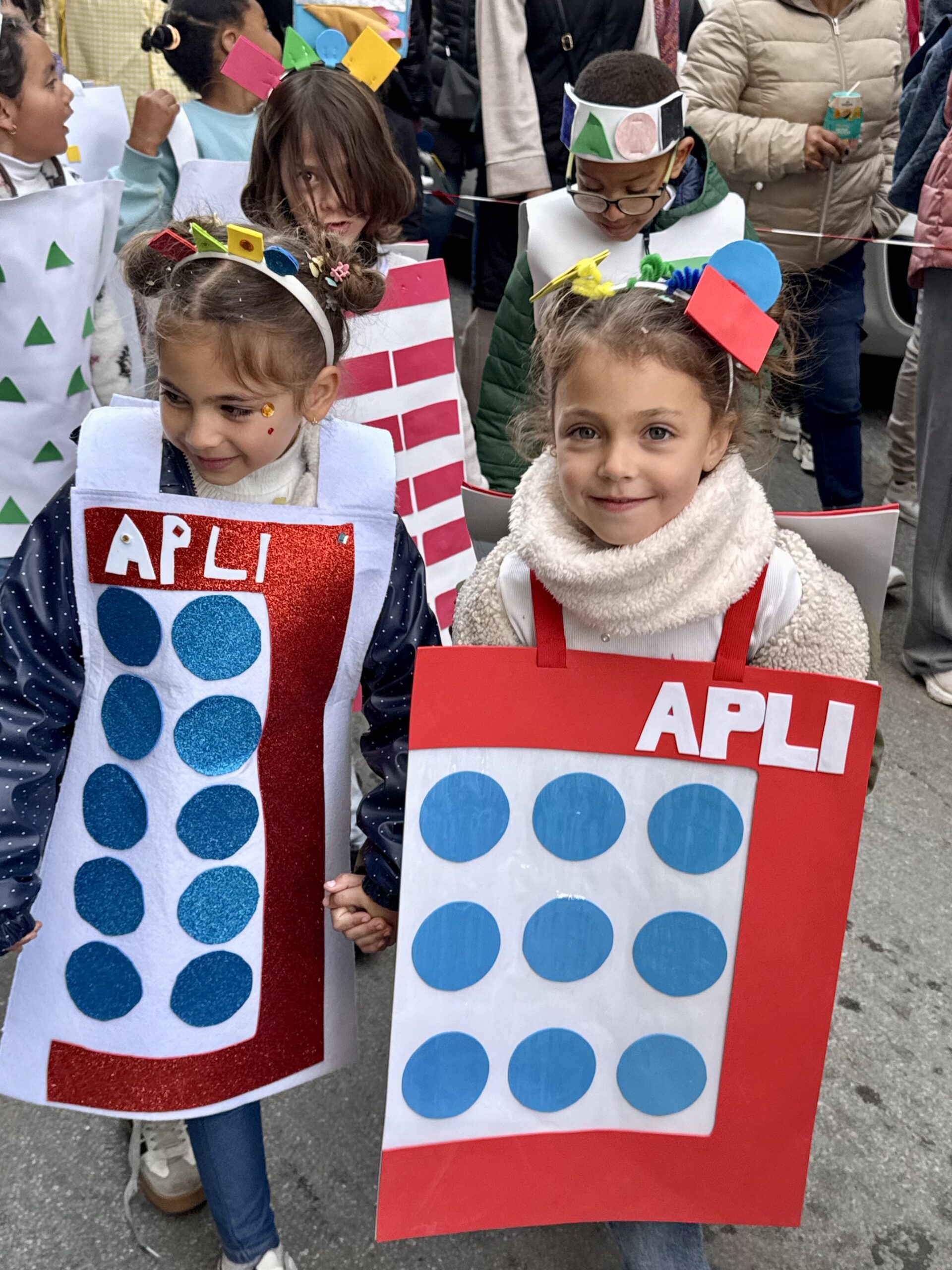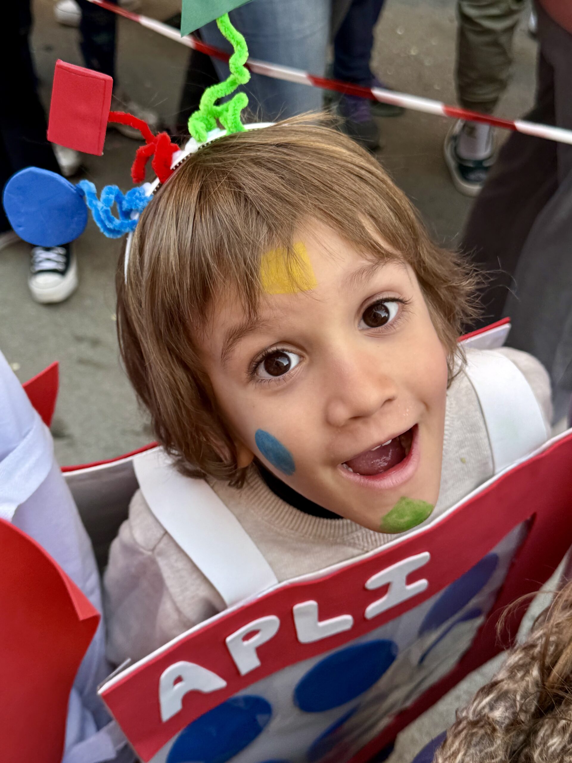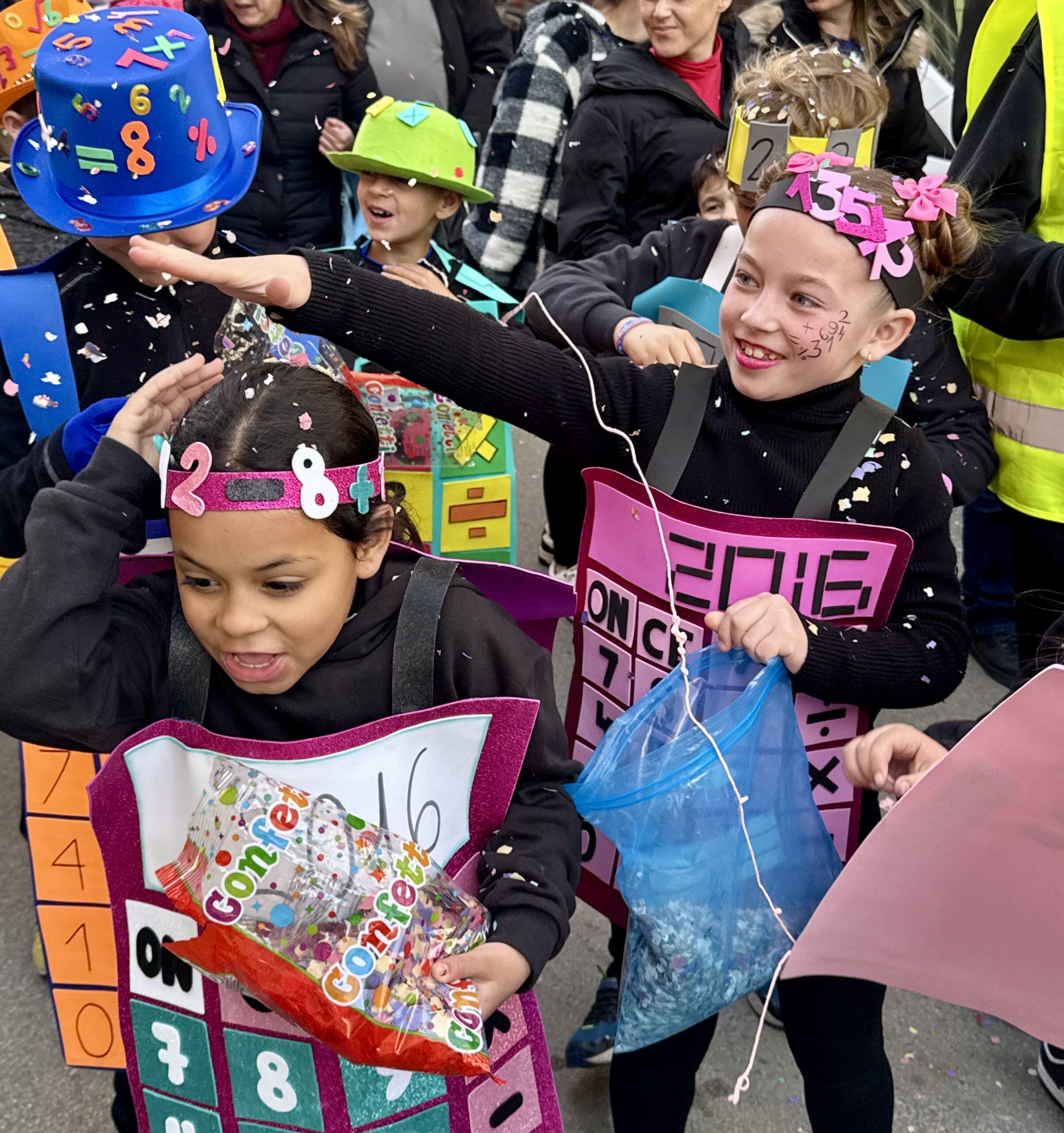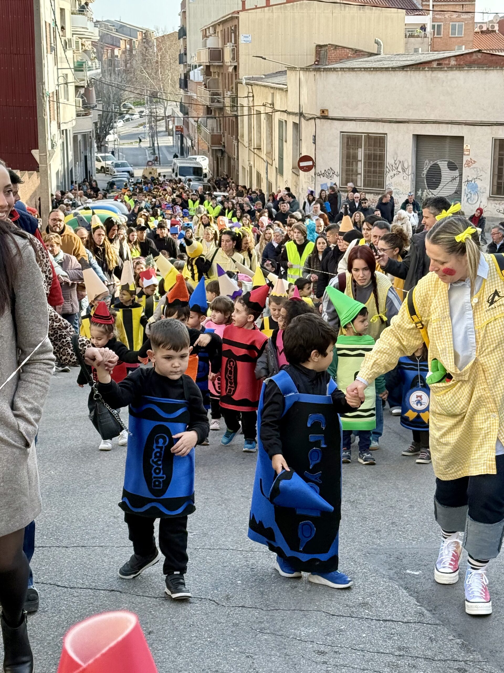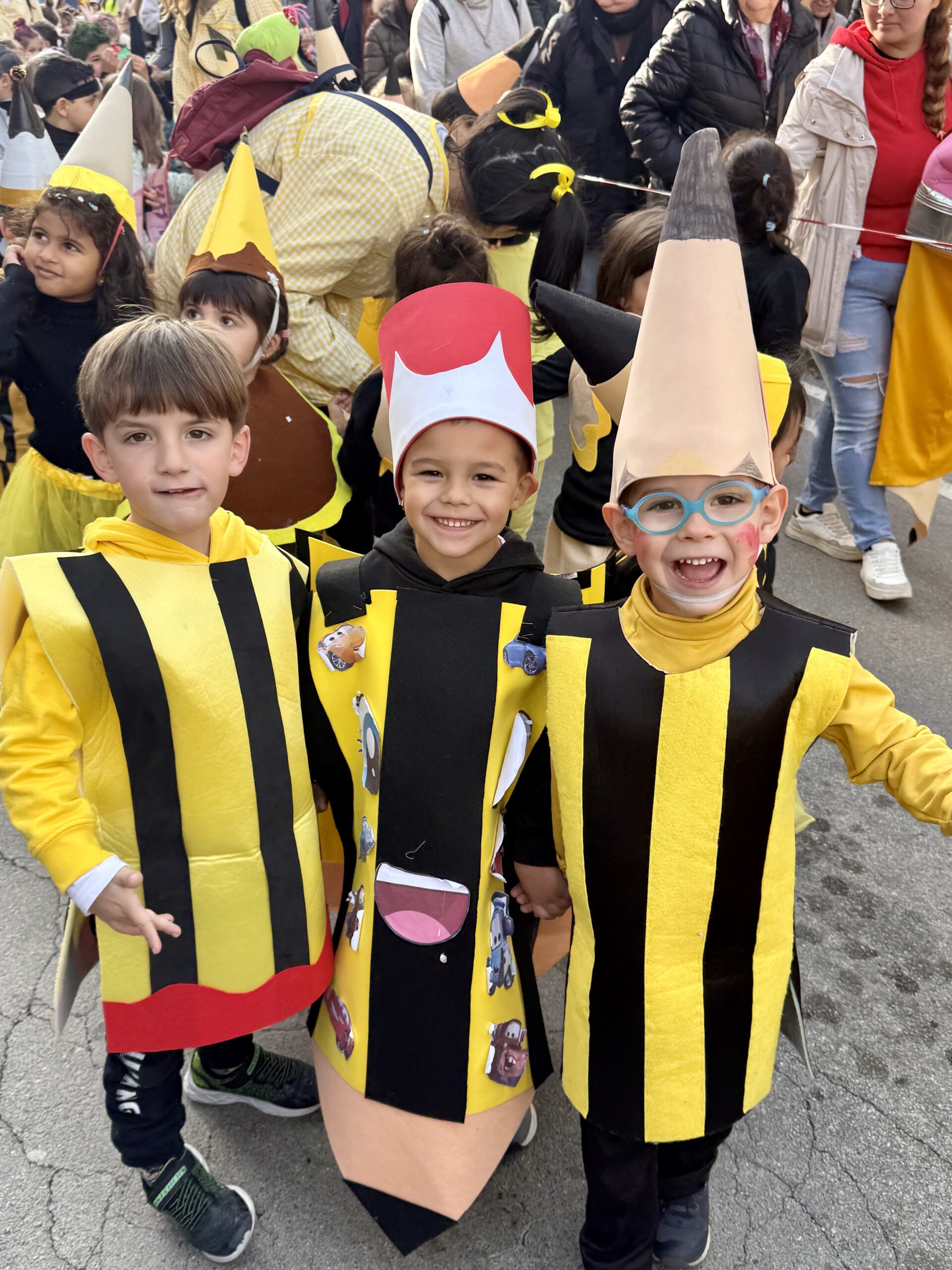 A la tarda, cada classe, ben guarnits amb la seva vestimenta sobre el material escolar, va sortir de forma ordenada davant de l’escola, tots amb la idea de lluir la seva disfressa amb molt d’orgull: Educació Infantil lluïen els colors, els llapis i les gomes d’esborrar; Cicle Inicial anaven de gomets i maquinetes; Cicle Mitjà, lluïen les calculadores i les pintures i pinzells; Cicle Superior, es van disfressar d’agendes i regles; i l’ESO lluïen de subratlladors, típex, xuletes i teclats d’ordinador.