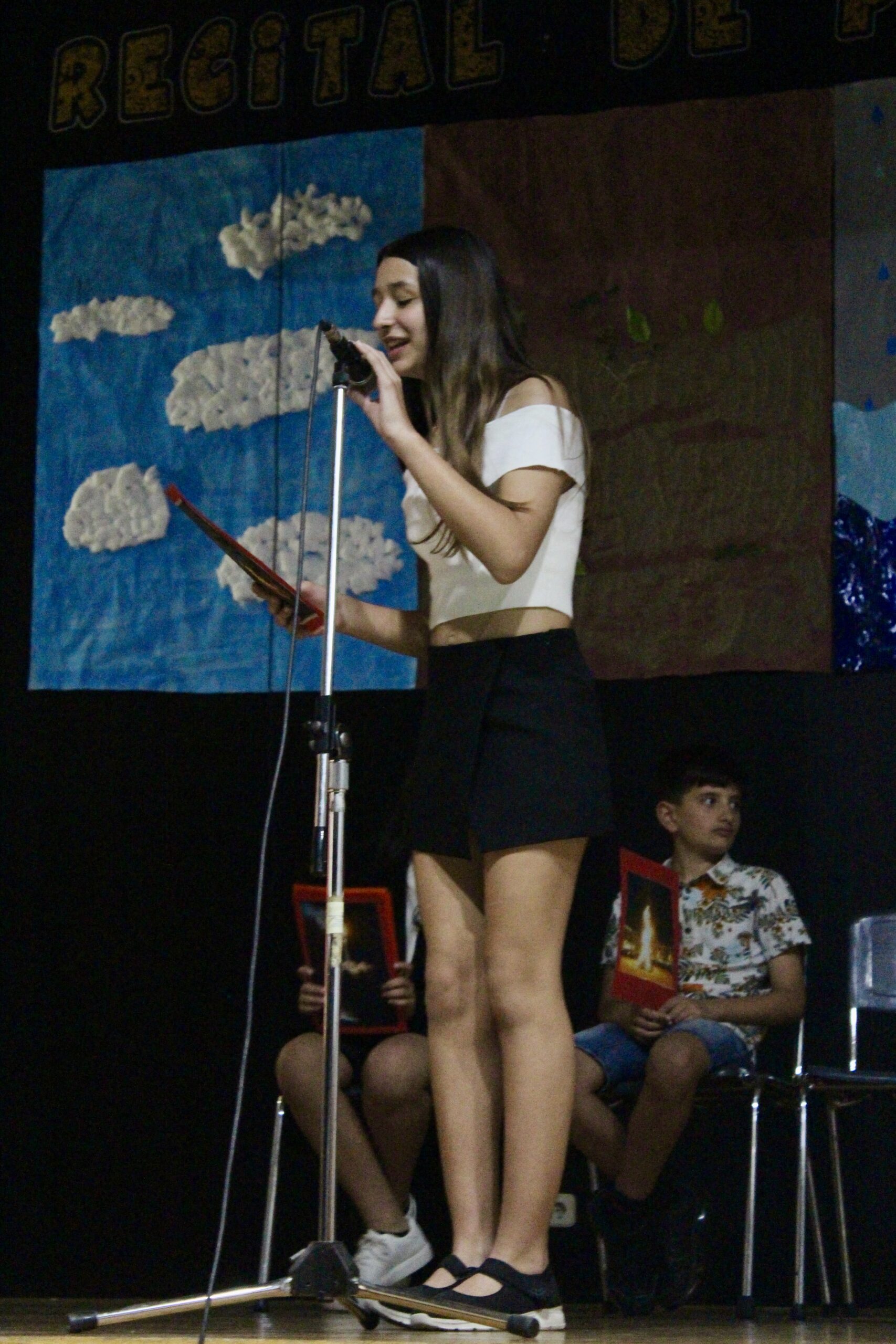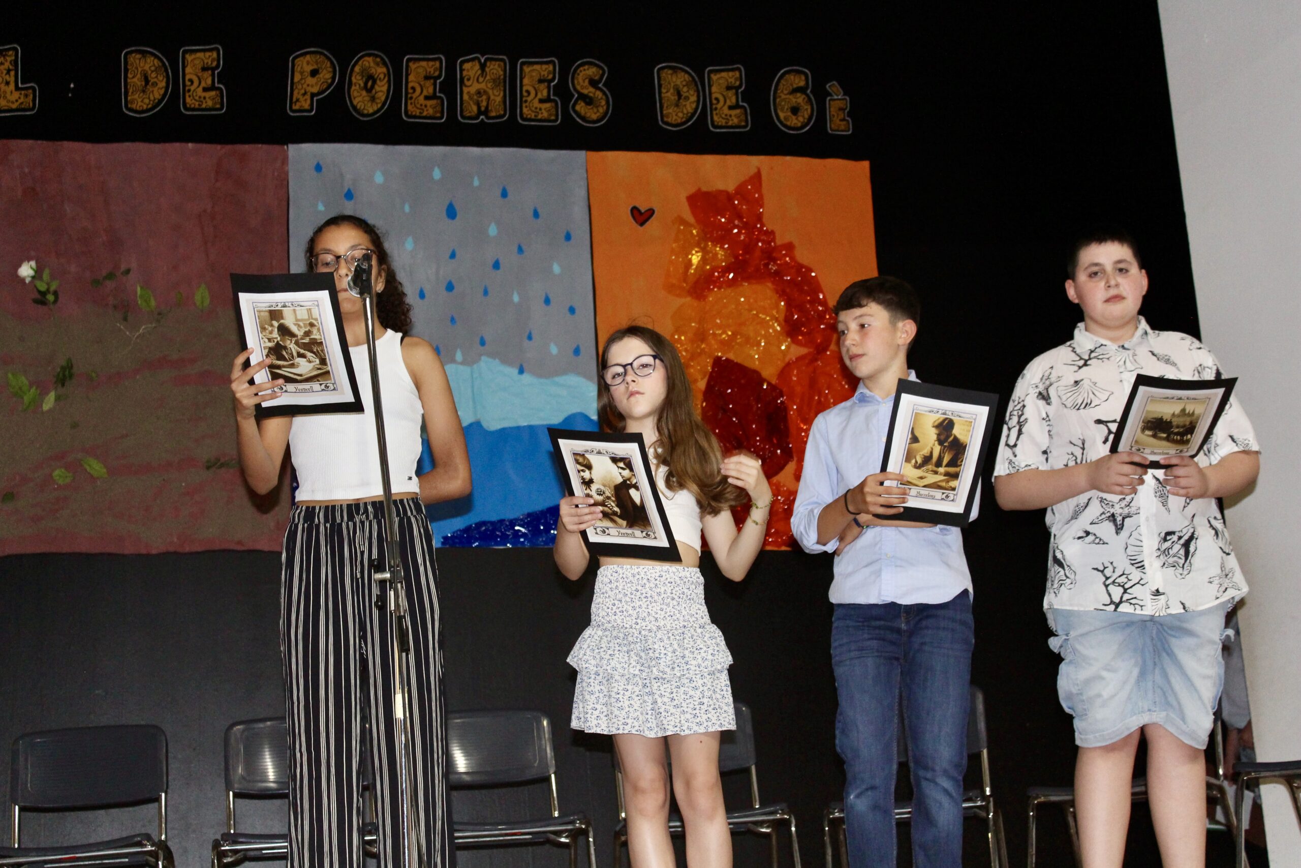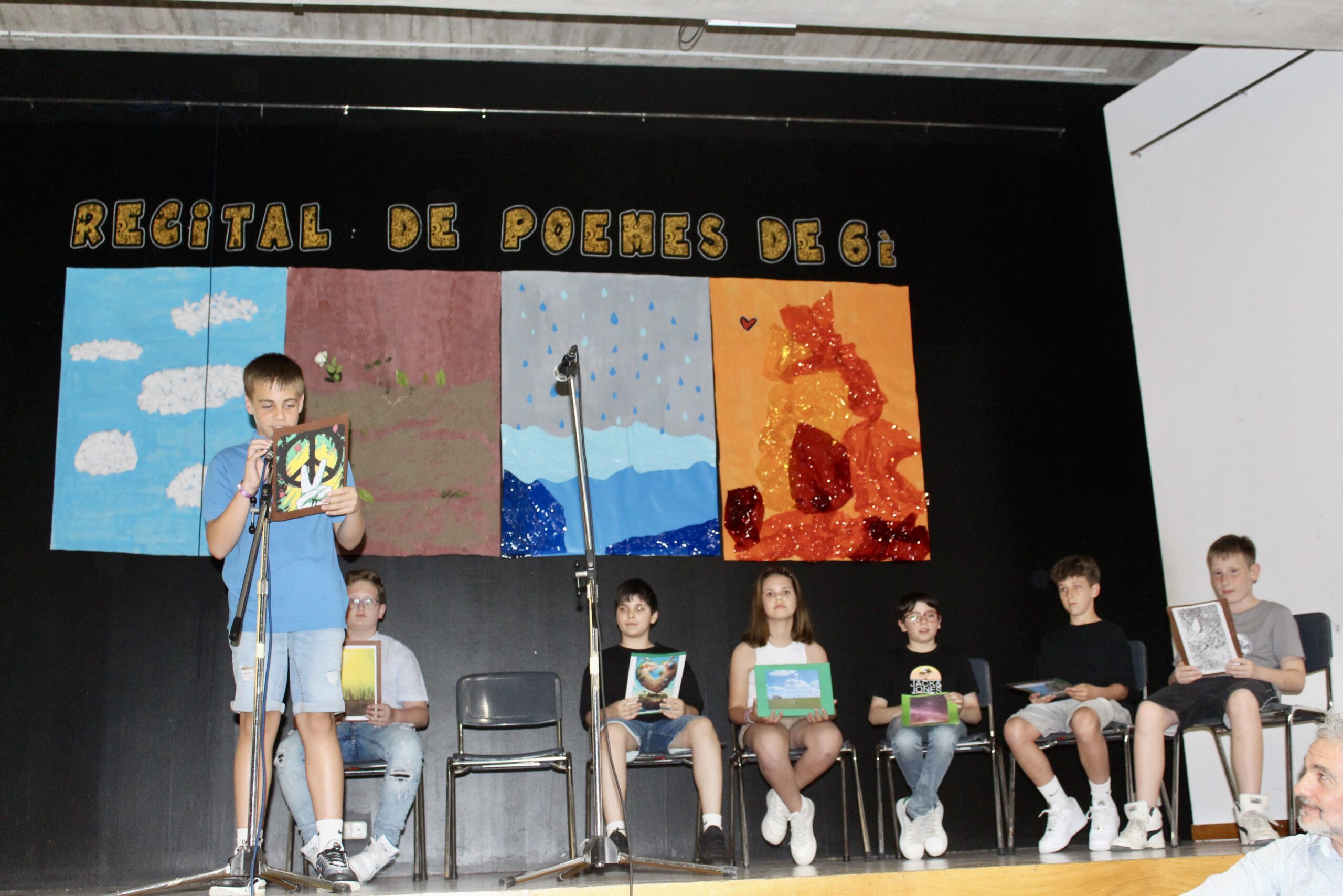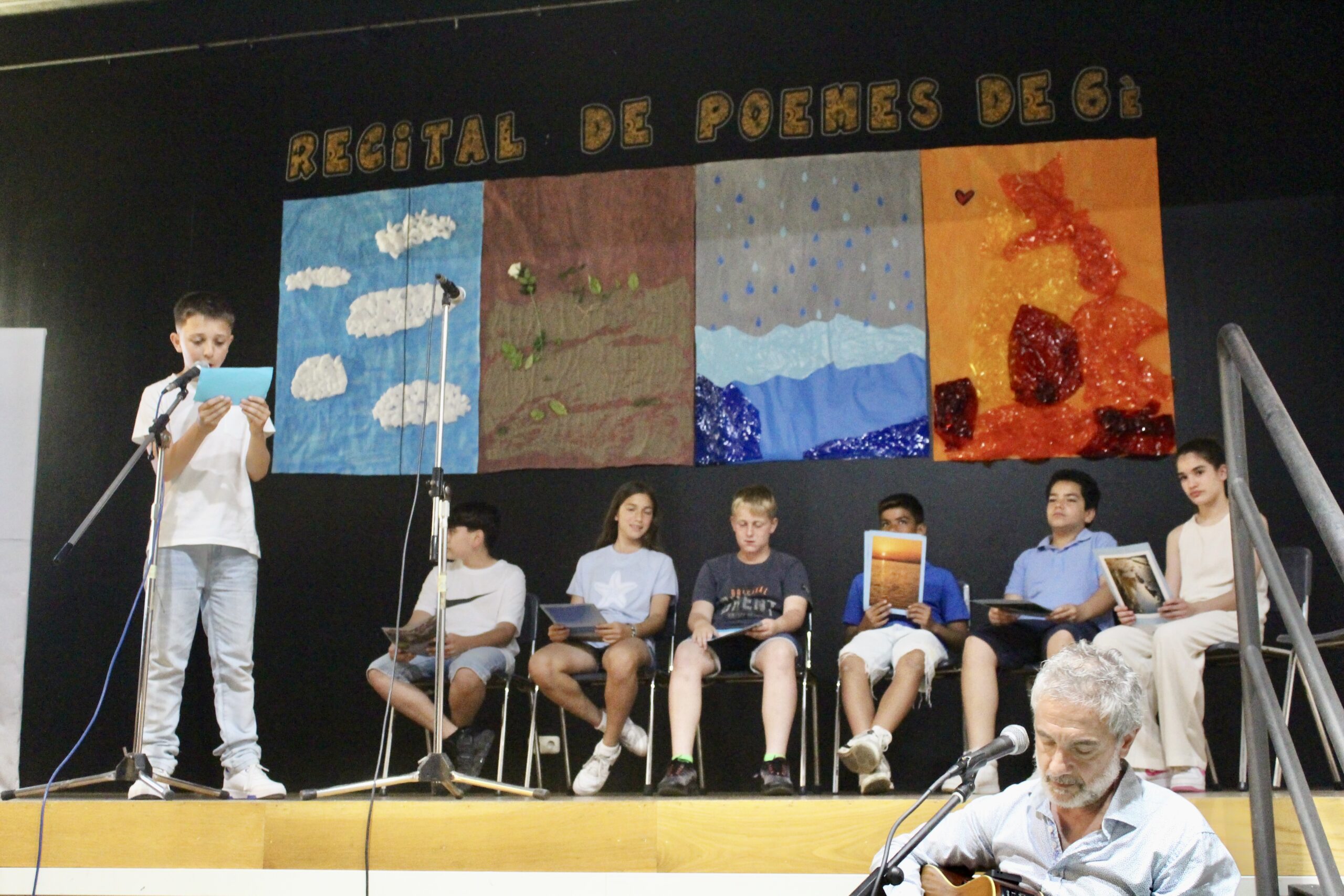 Els nens i nenes de 6è van recitar els seus poemes davant dels pares, amics i familiars. Els va acompanyar el músic Xavi Túrnez amb diferents peces musicals, que van acabar d’amenitzar l’actuació.